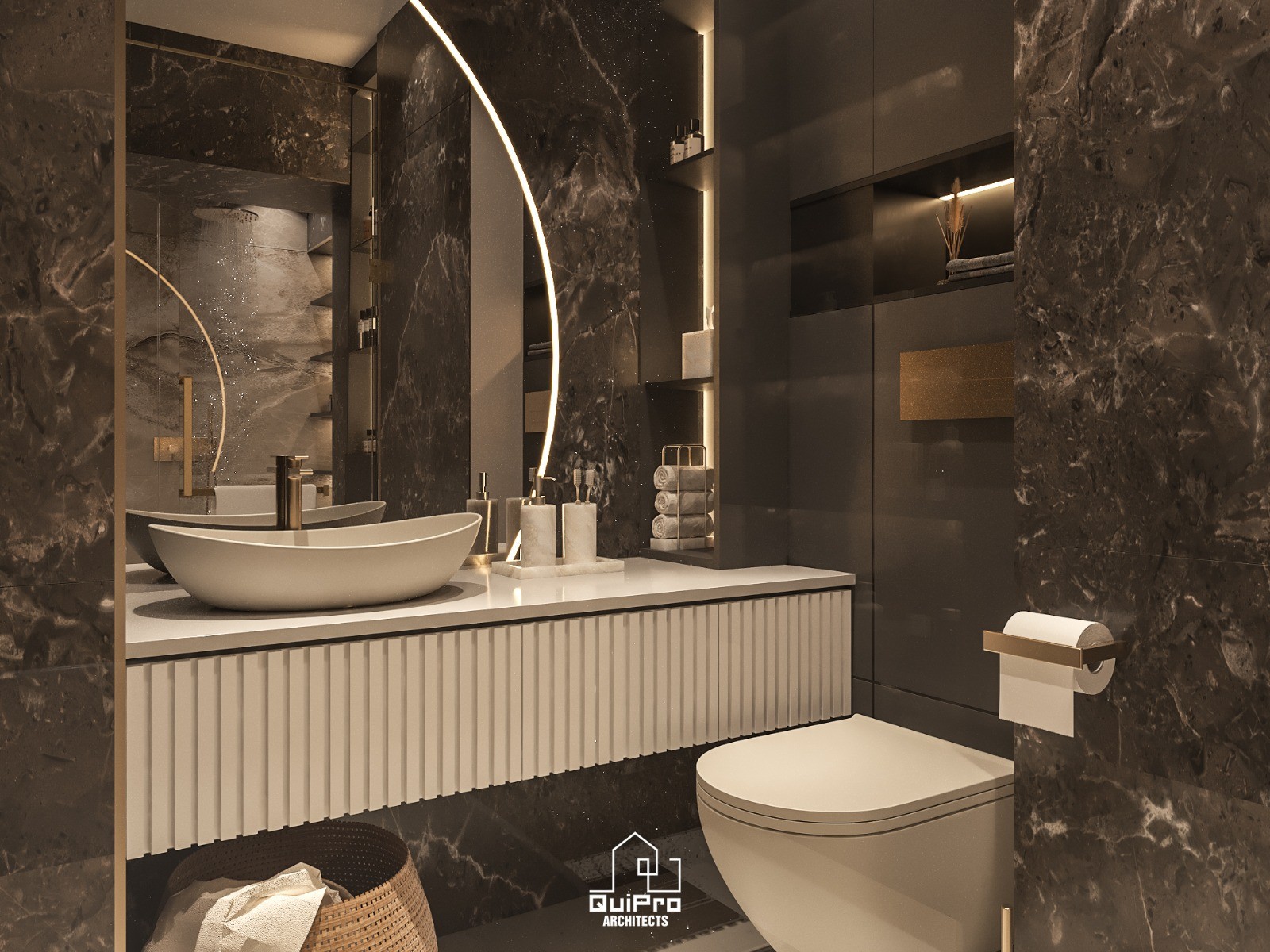În locul contrastelor puternice, interiorul mizează pe nuanțe, texturi și detalii subtile. Tonurile neutre calde, materialele tactile și compozițiile echilibrate creează un spațiu contemporan, dar atemporal — minimalist ca structură, dar bogat ca atmosferă.