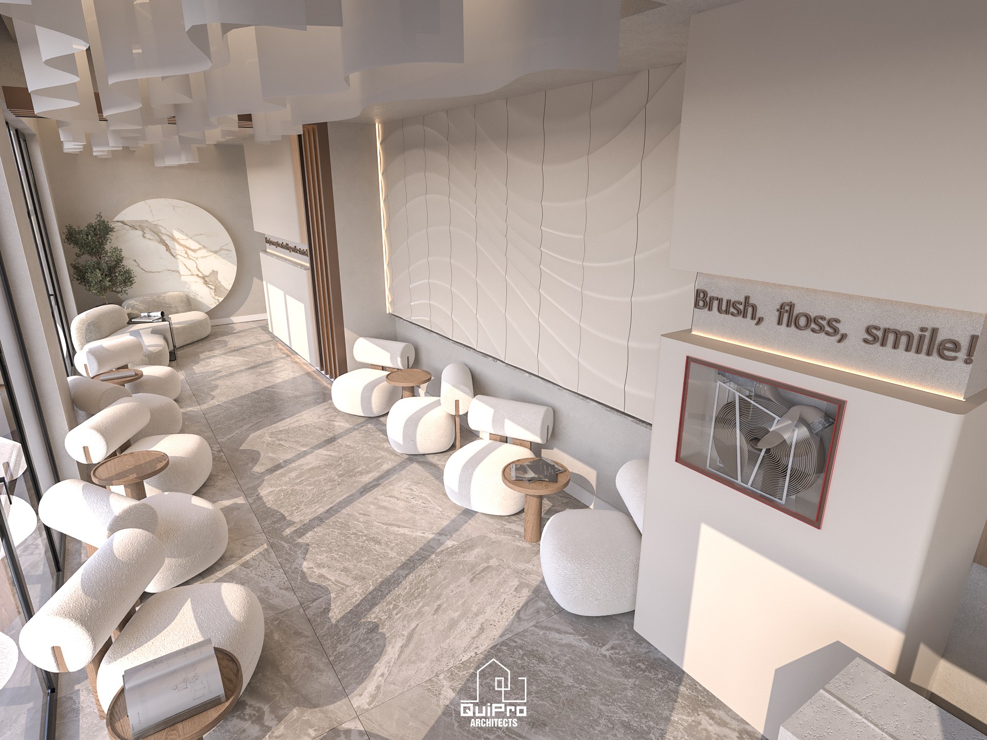 Proiectul a fost gândit pentru a redefini experiența pacientului într-un cabinet stomatologic contemporan. Obiectivul principal a fost crearea unui spațiu care inspiră încredere, igienă impecabilă și profesionalism, fără a genera tensiune sau anxietate.