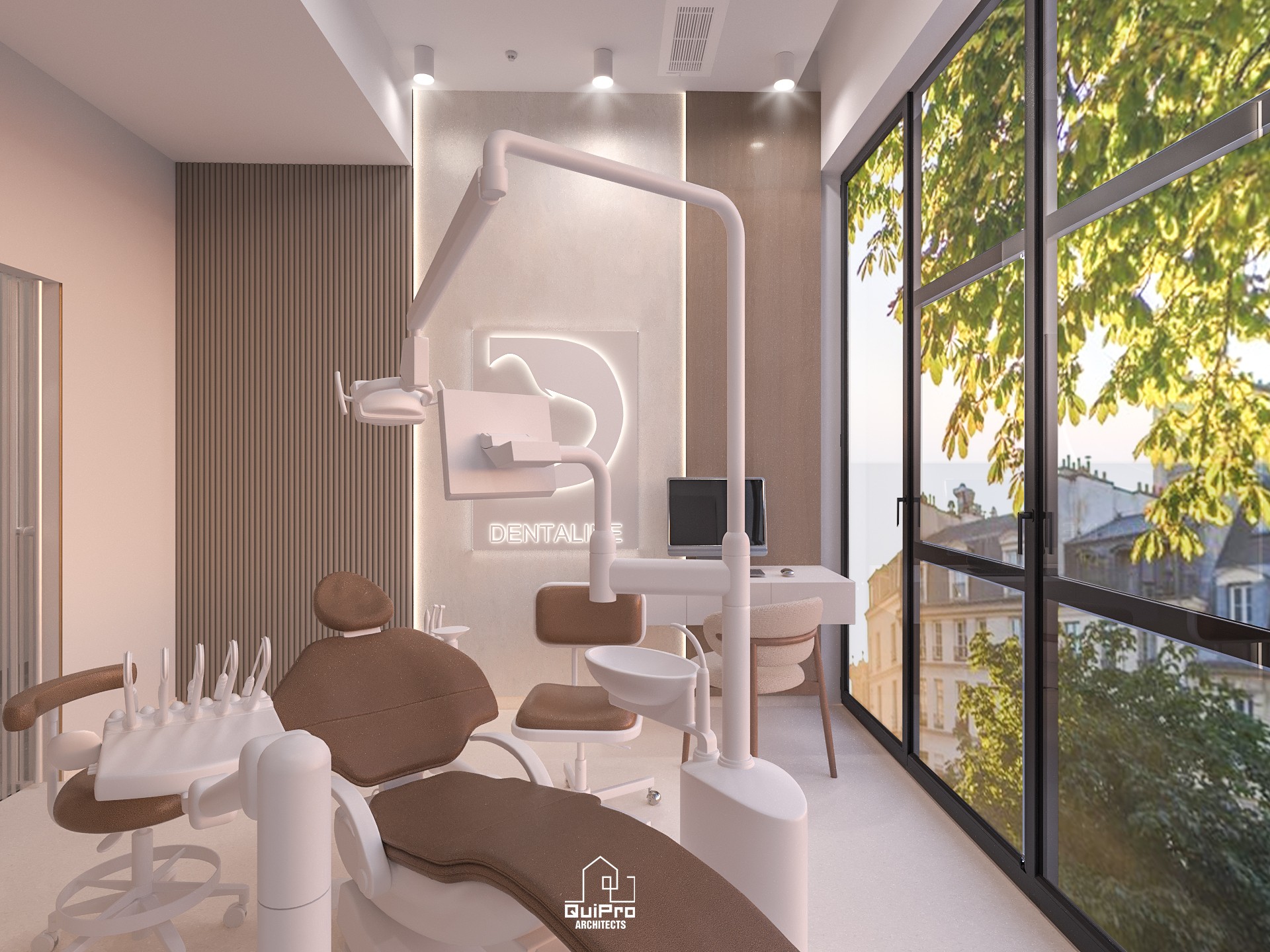 Designul echilibrează zona tehnică și cea emoțională. Am urmărit să transformăm interacțiunea medicală într-o experiență calmă, controlată și elegantă, printr-un ambient coerent, iluminat arhitectural și o paletă cromatică atent calibrată.