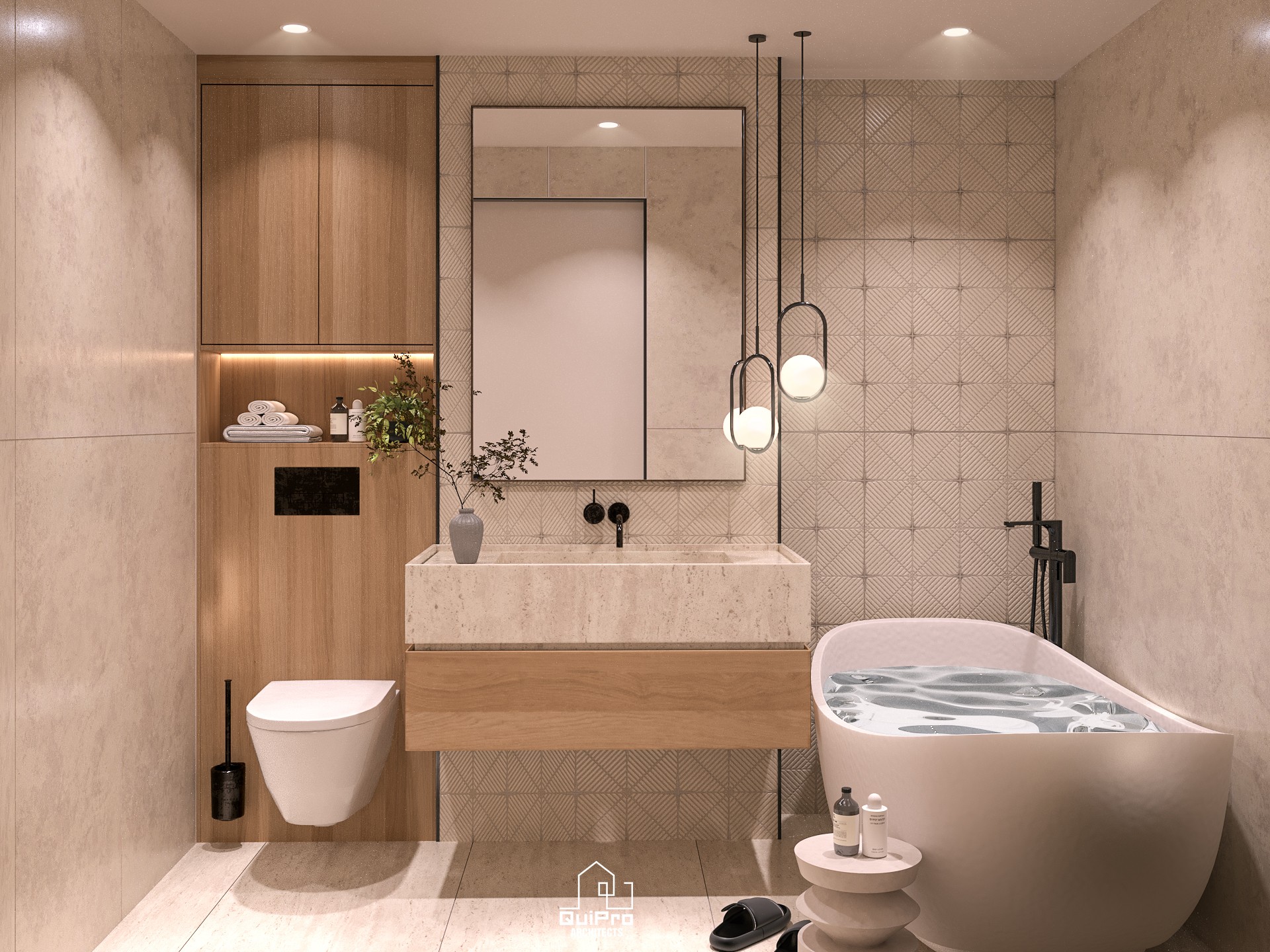 Am urmărit o coerență vizuală completă: lemn în tonuri calde, texturi minerale, sticlă fumurie și accente metalice discrete. Fiecare zonă este definită clar, dar conectată fluid, astfel încât spațiul să curgă natural și să inspire relaxare.