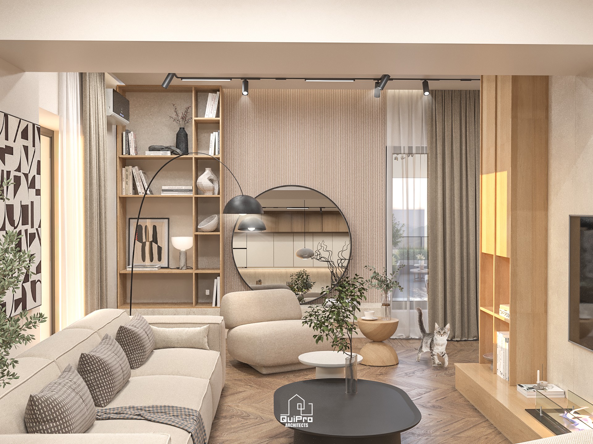Proiectul a fost gândit ca o reinterpretare contemporană a confortului urban premium. Obiectivul a fost crearea unui apartament cald, sofisticat și perfect echilibrat între estetică și funcționalitate, unde materialele naturale devin elementul central al experienței.