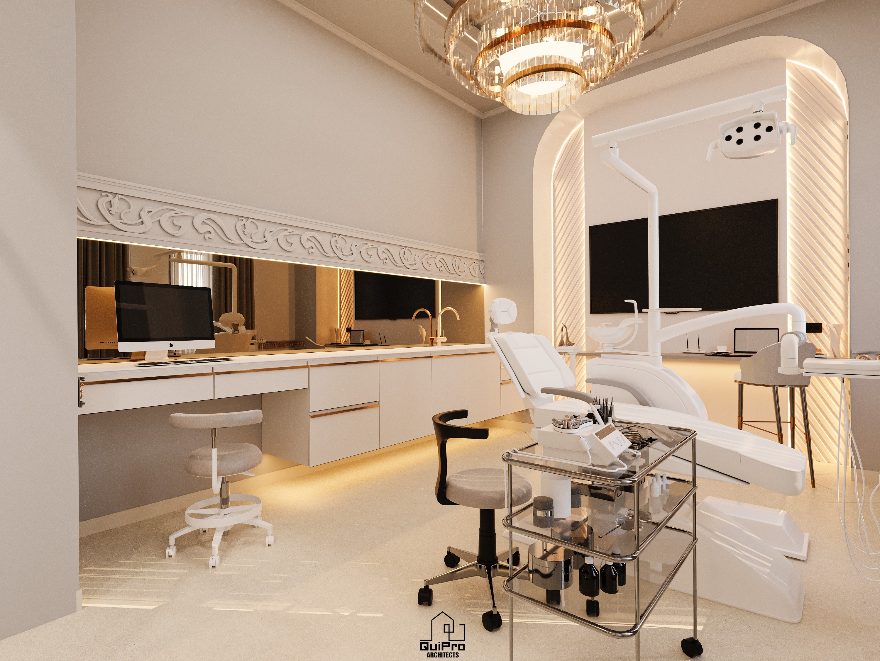 Am urmărit echilibrarea zonei tehnice cu cea emoțională. Spațiul nu este perceput ca unul strict medical, ci ca un ambient elegant, controlat, în care pacientul se simte în siguranță. Iluminatul arhitectural, detaliile clasice reinterpretate și integrarea discretă a echipamentelor creează o experiență coerentă și calmă.